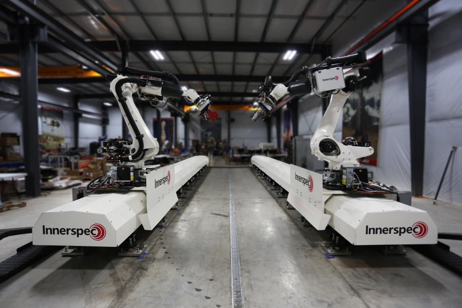Automatizované robotické systémy určené na kontrolu kompozitových dielov a kovových komponentov.