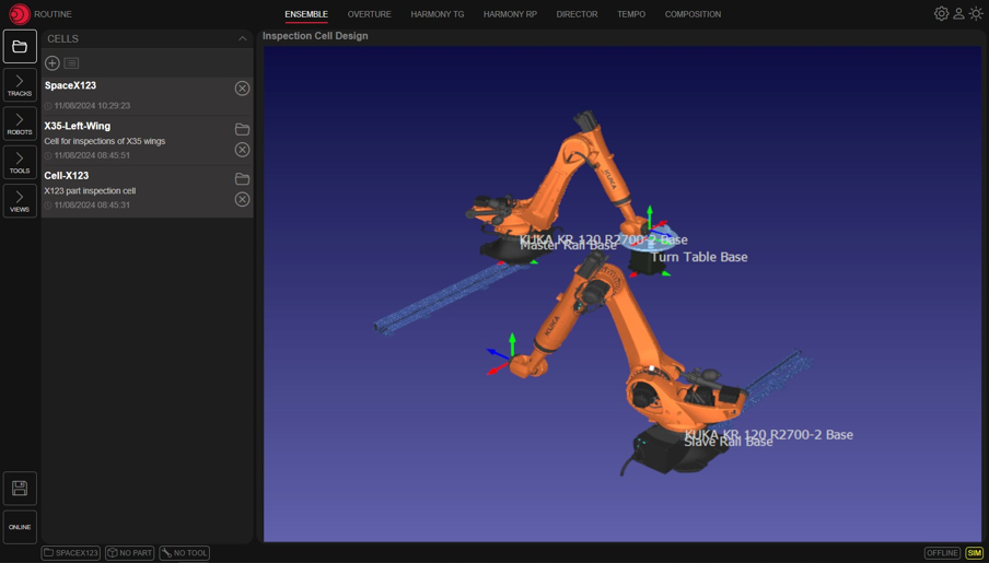 NDT-WEB ROUTINE (Robot UT Integration Environment) je softvérový balík navrhnutý špeciálne pre našu platformu robotických systémov (CHORUS). Sada webových a bezproblémovo integrovaných podprogramov pokrýva všetky offline a online procesy potrebné na správu robotických kontrol.
