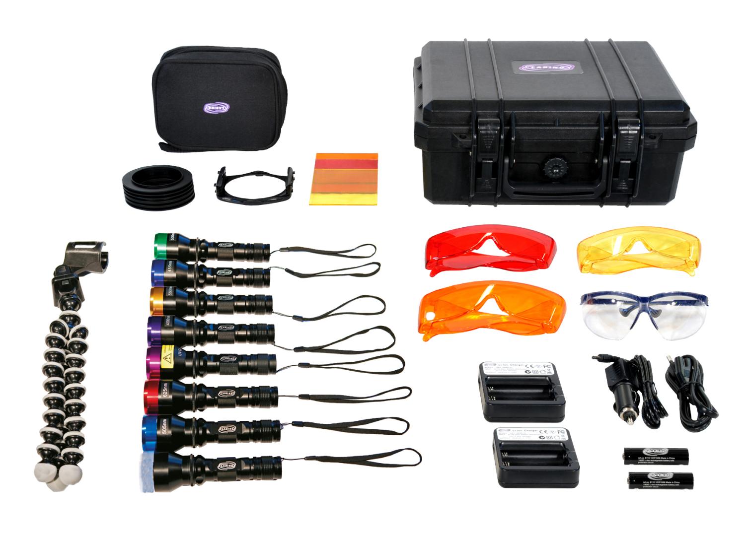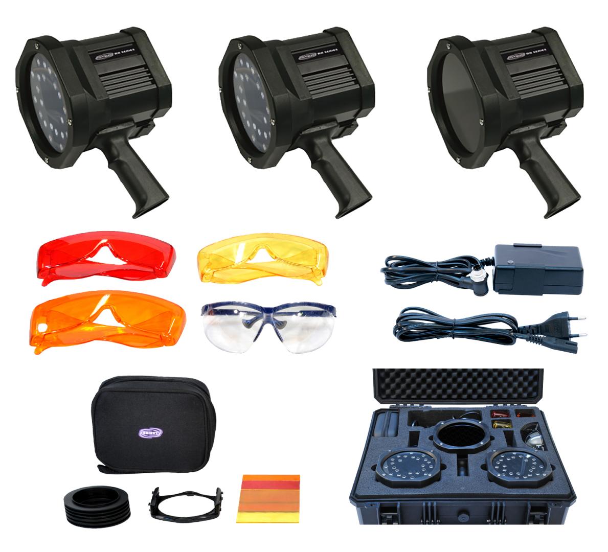 Sady UV lámp pre forenznú analýzu.