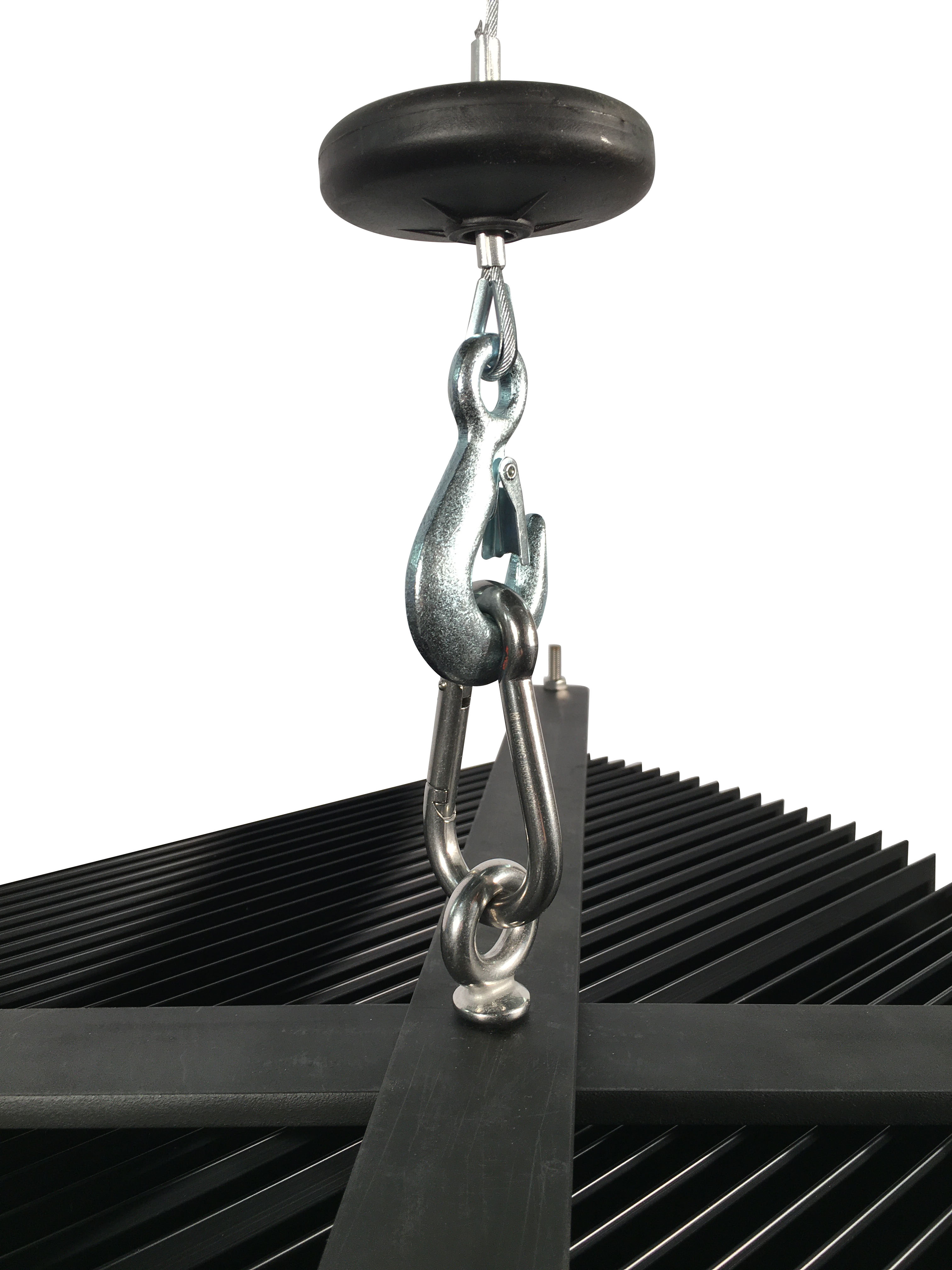 Konštrukciu zaisťuje upevňovacie oko spolu s dvoma výkonnými nerezovými nosníkmi.